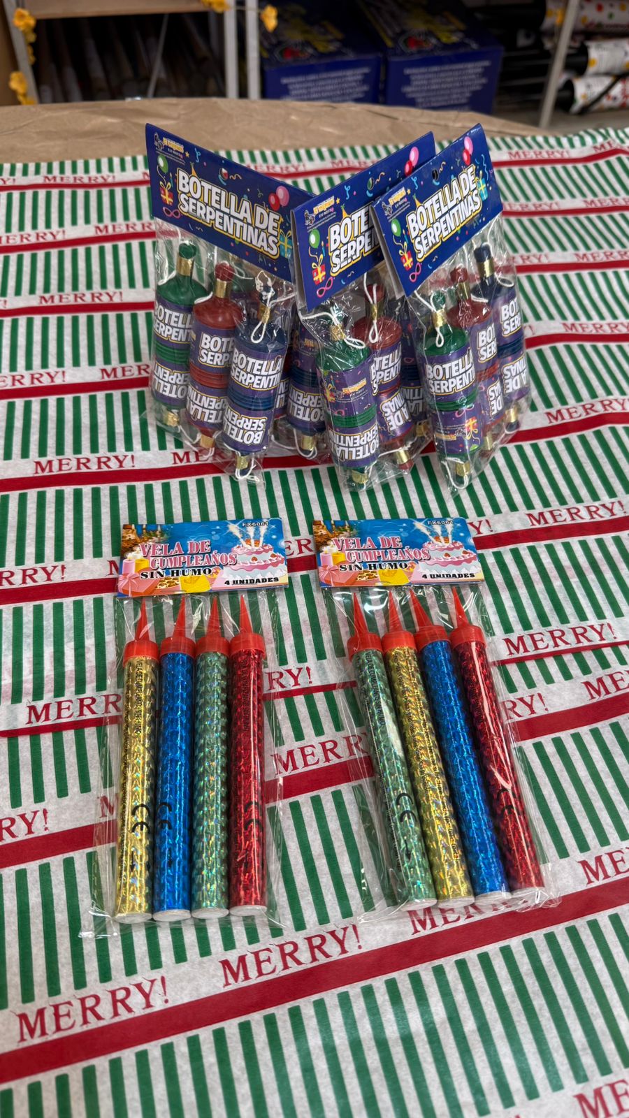 VELA VOLCAN Y SACA SERPENTINAS DE COLORES